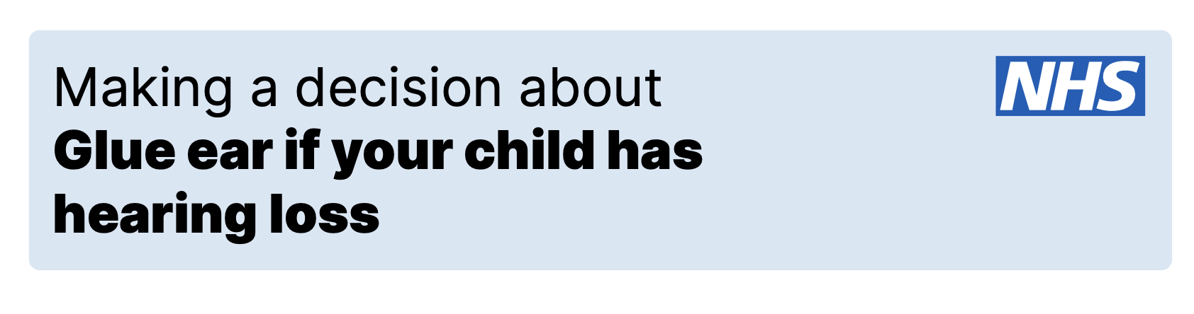 Tool to help decide between treatment options. It is for parents or carers of children younger than 12 years who have glue ear with hearing loss. You can go through it and use it to help you talk to your child’s care team.